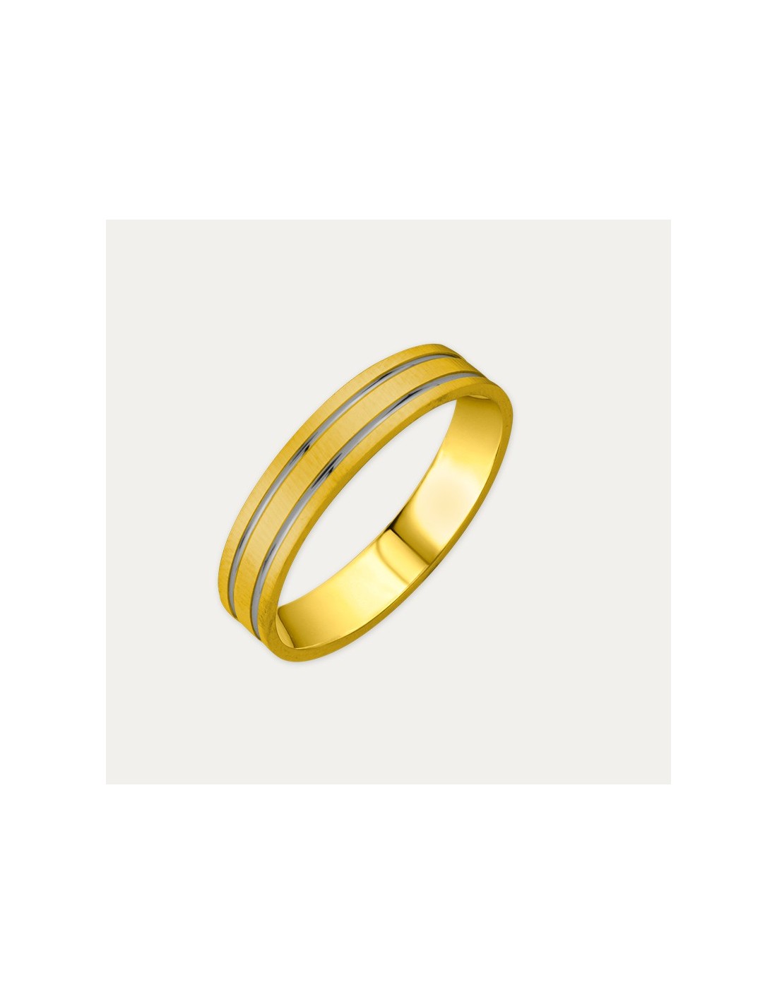 Alianza de boda de 9k con motivo de dos líneas plateadas