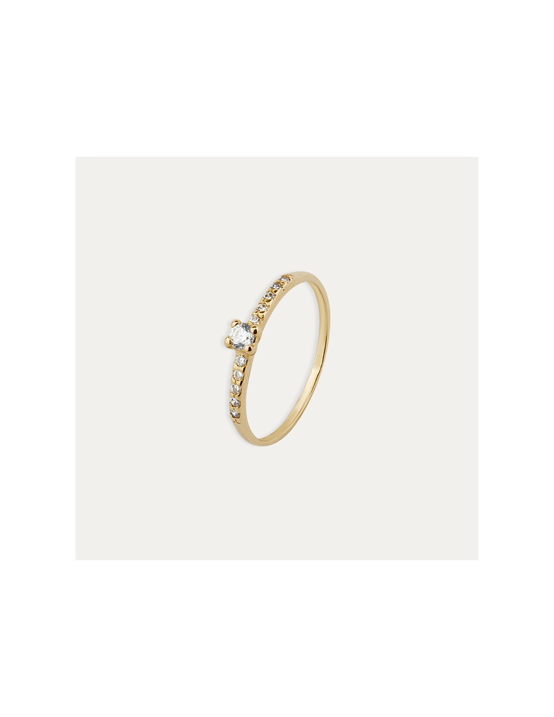 Anillo atemporal de oro de 9 quilates con pequeñas circonitas. Refleja la esencia del lujo y elegancia.
