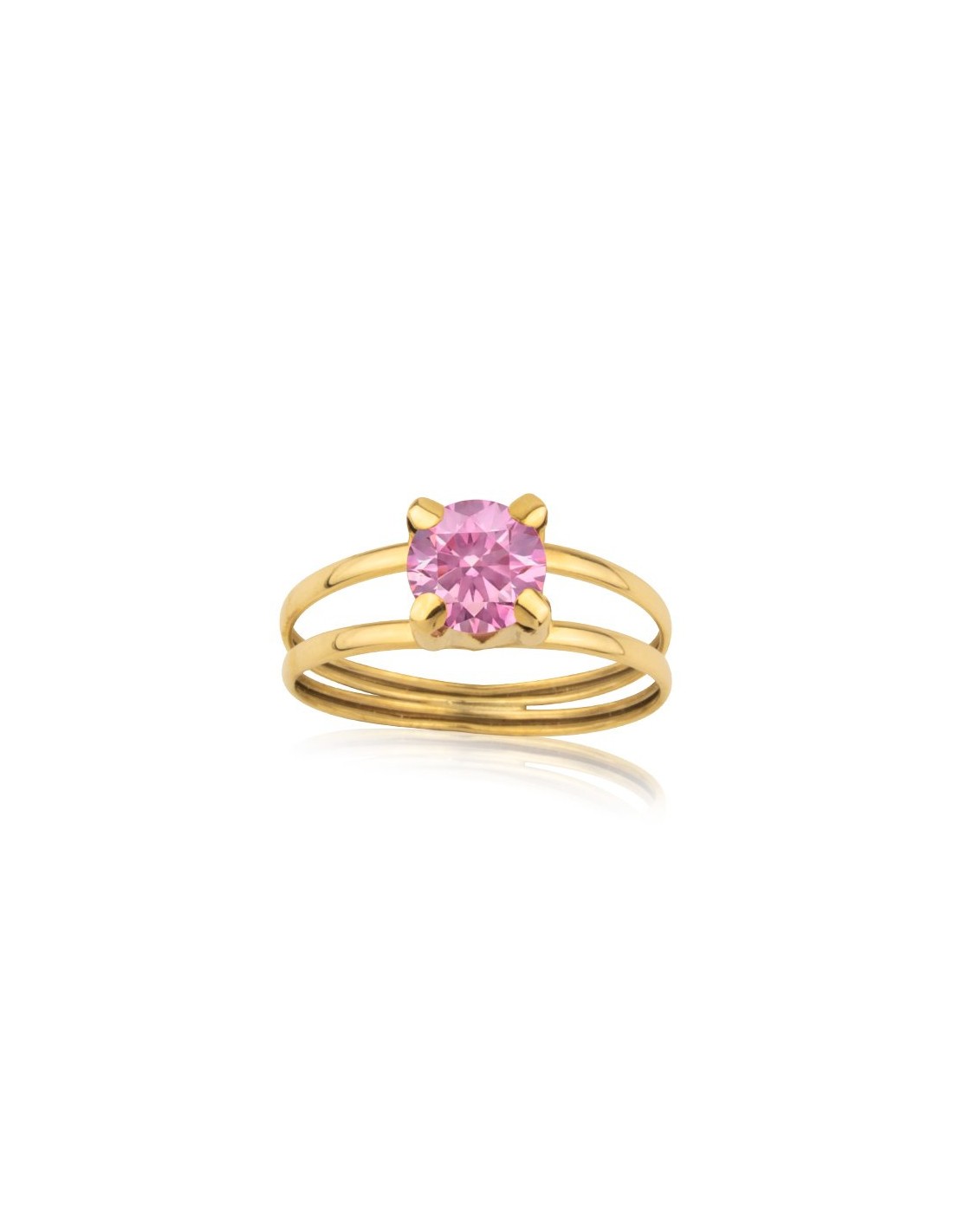 Anillo en Oro 9 kilates de doble aro con solitario en piedra de color rosa con garras.