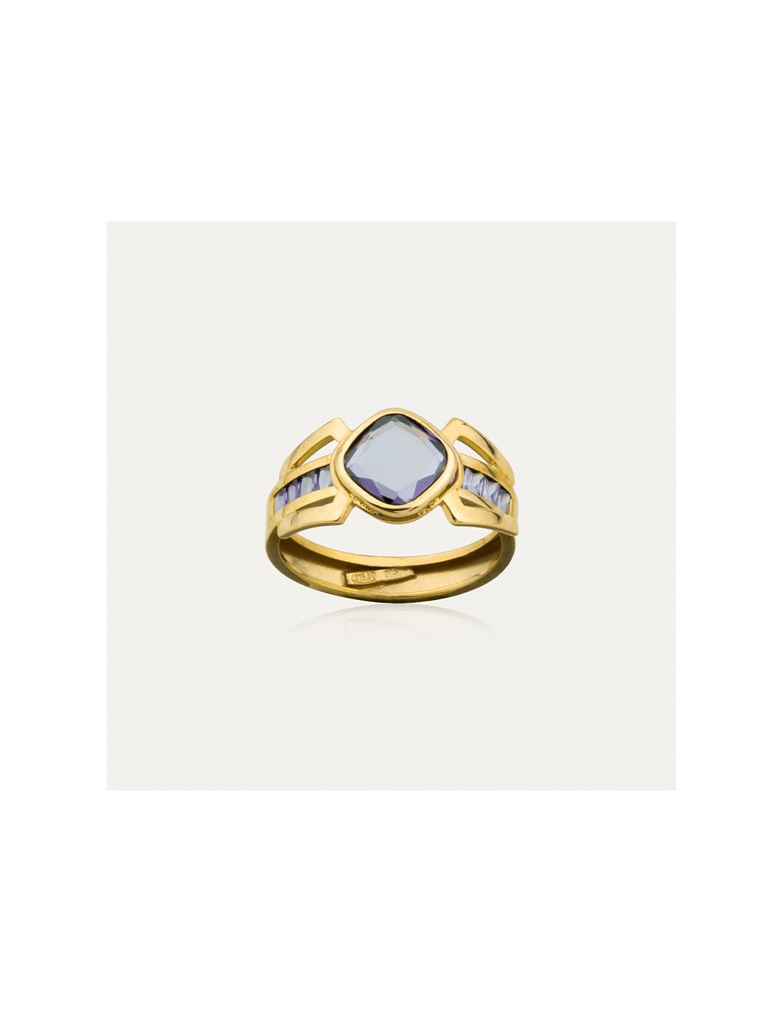 Anillo en Oro 9k con piedras de color amatista.
