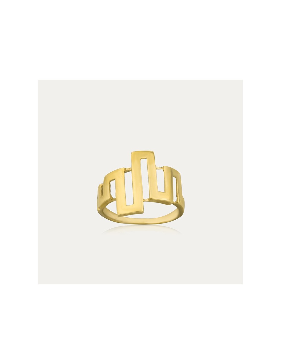 Anillo en Oro 9k, con un diseño de torres abstractas en su cabeza.