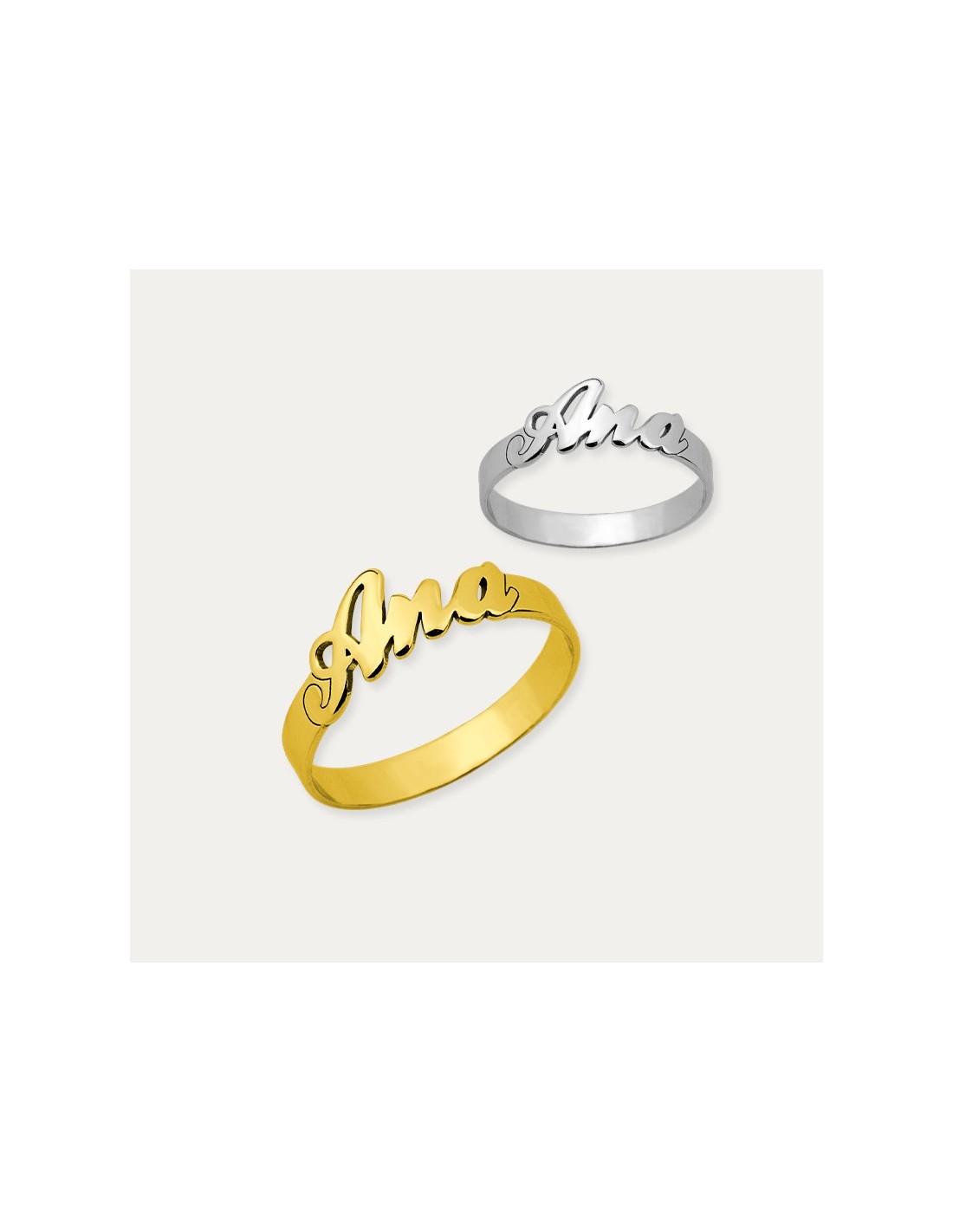 Sortija para personalizar con nombre en Plata Dorada de 925 milésimas.