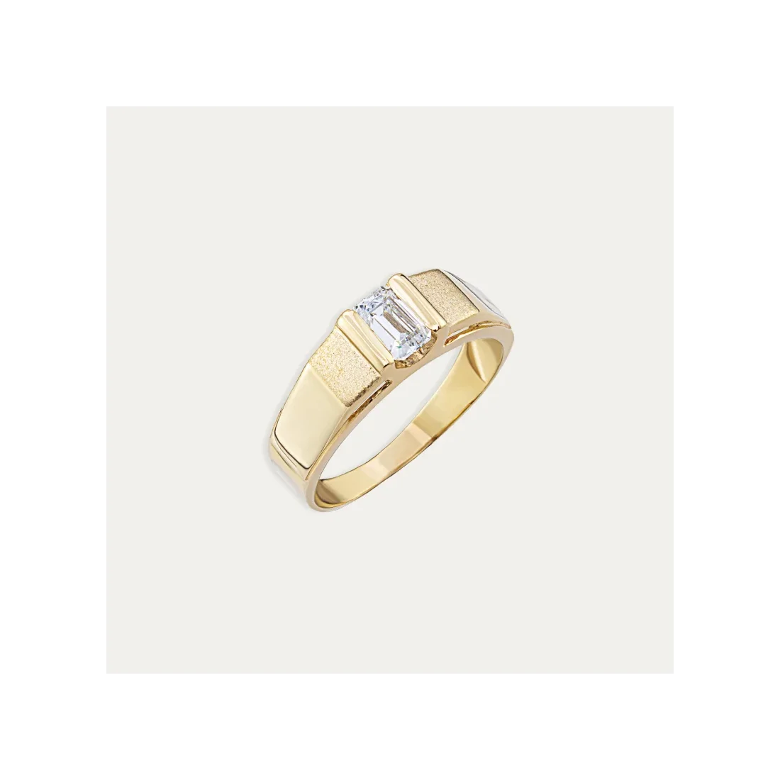Este solitario de oro de 9 quilates para caballero combina elegancia y carácter en un diseño moderno con acabado en brillo y mate. Incorpora una circonita central de estilo talla esmeralda, que aporta un toque sofisticado y masculino sin excesos. Fabricado en oro 9k, es una joya resistente y cómoda, ideal para uso diario o para ocasiones especiales. Perfecto como anillo distintivo o como regalo elegante para hombre.