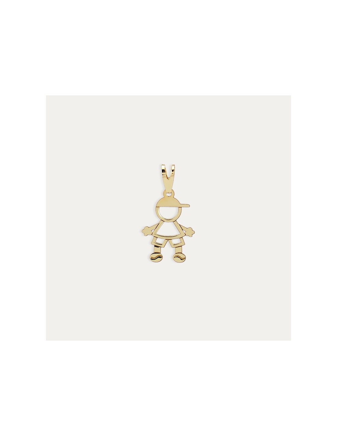 Colgante fabricado en Oro de 9 kilates con motivo de niño. La joya perfecta para regalar a mamá en el Día de la Madre.