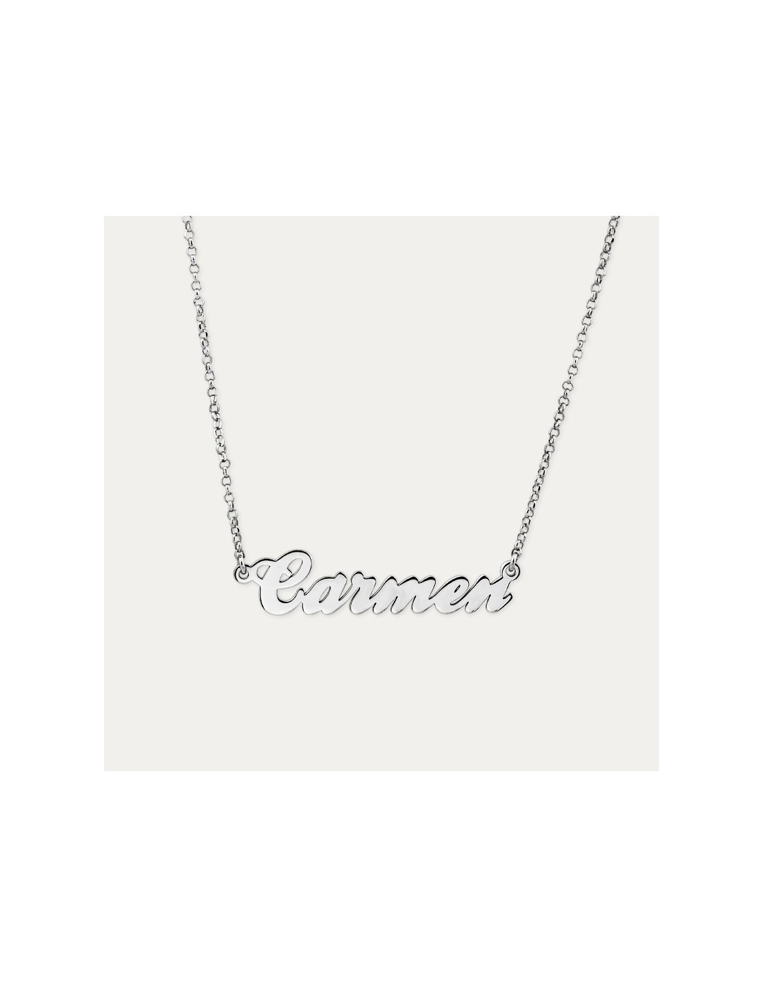 Gargantilla personalizable con tu nombre en Plata de 925 milésimas, perfecta para llevar con un conjunto casual en cualquier momento del día.