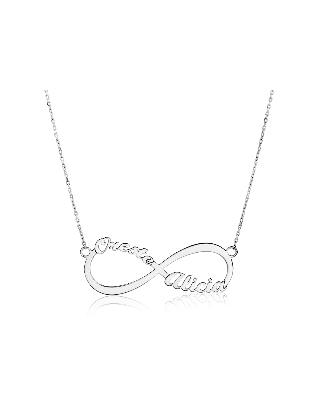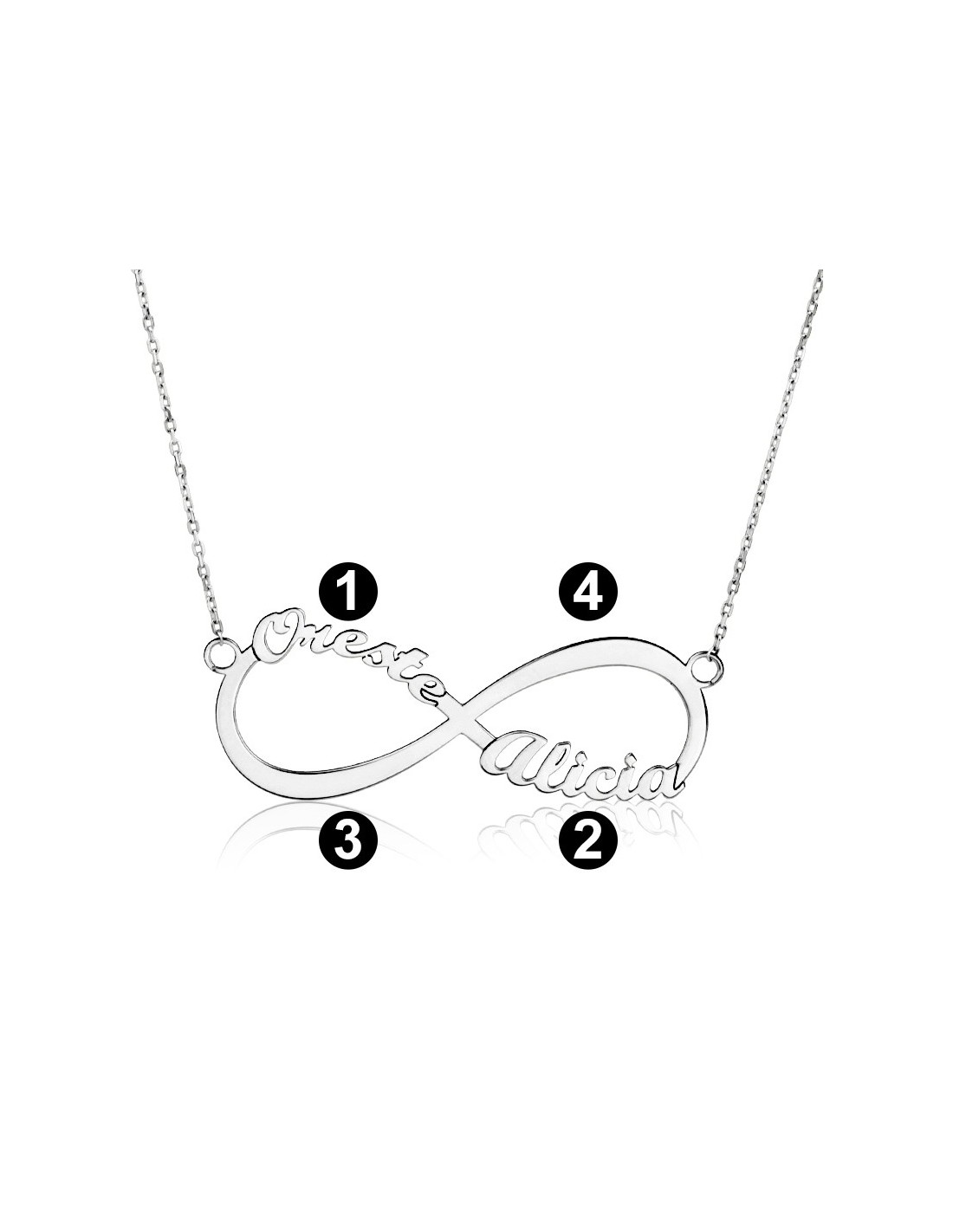 Collar Oro 18k Blanco Cuatro Nombres Personalizado Infinito