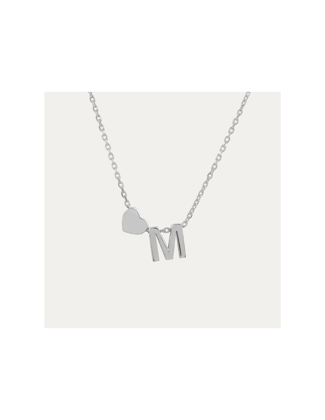 Collar con letra personalizada, con un añadido de un corazón que hace de ésta una pieza mucho más especial. Plata 925 mlm.