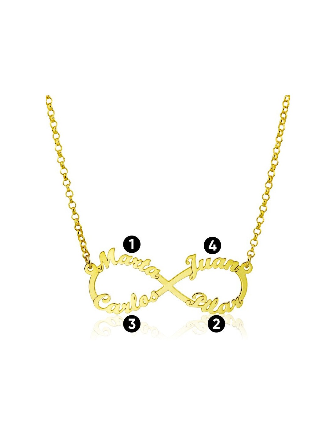 Collar Oro 18k Cuatro Nombres Personalizados Infinito