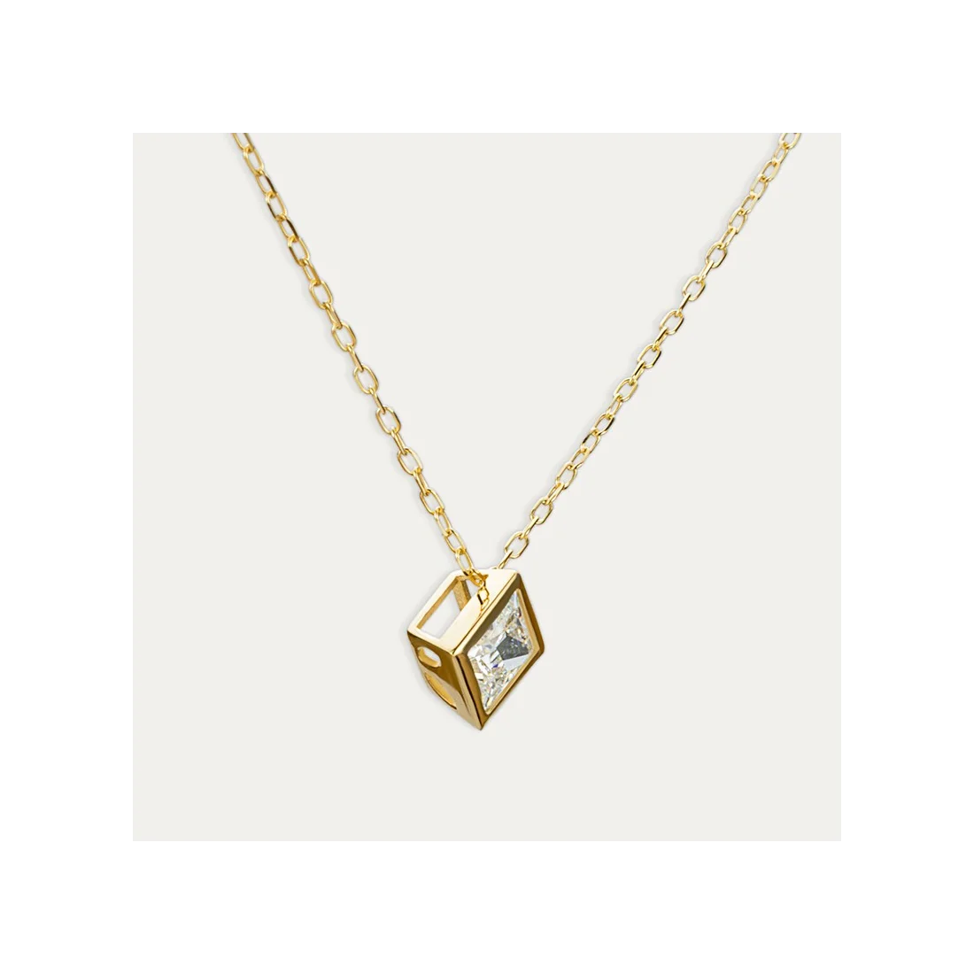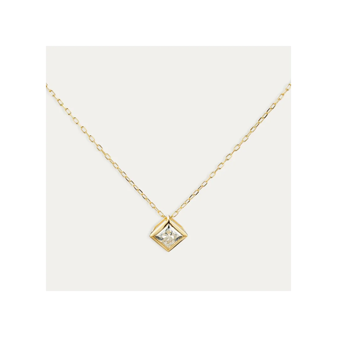 Cadena más colgante de oro 9 quilates con precioso diamante creado en forma de rombo. Una joya minimalista e ideal para regalar.