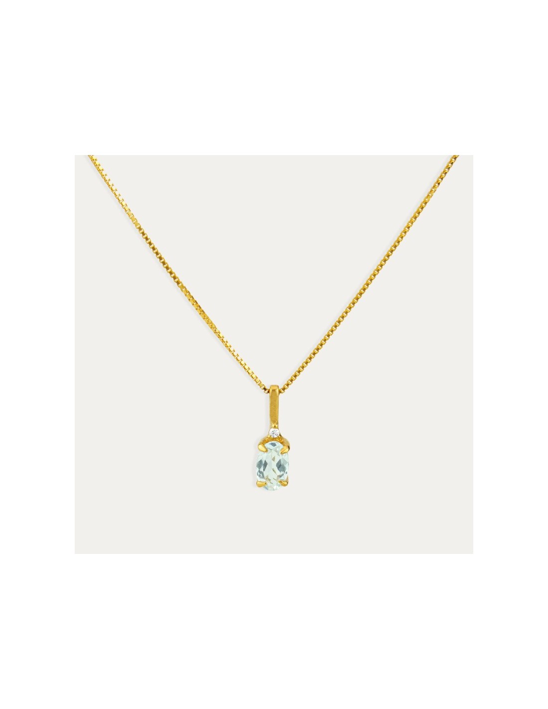 Gargantilla más colgante elaborado en oro de 18 quilates con aguamarina natural y un brillante. Disfruta de esta pieza única hecha para ti.