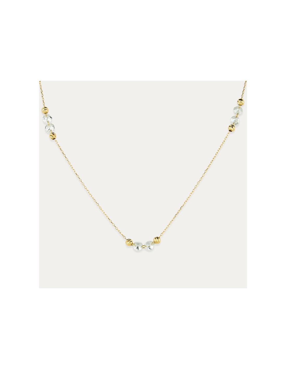 Collar de oro de 18 quilates con pequeñas bolas combinadas con piedras de color blanco.