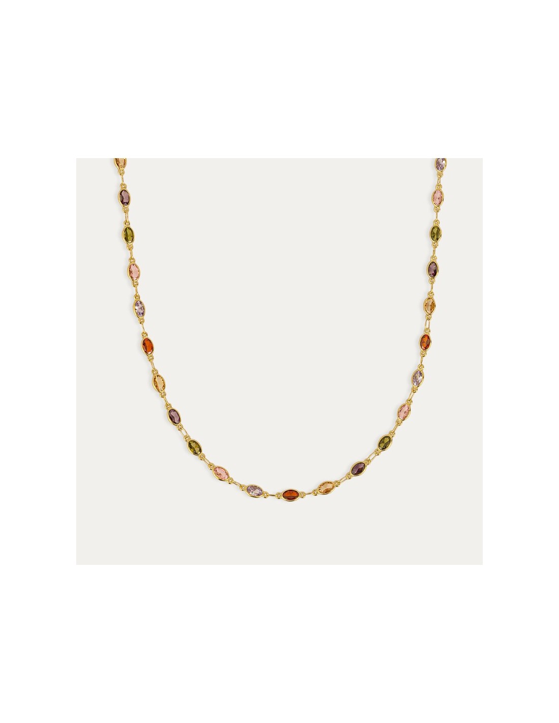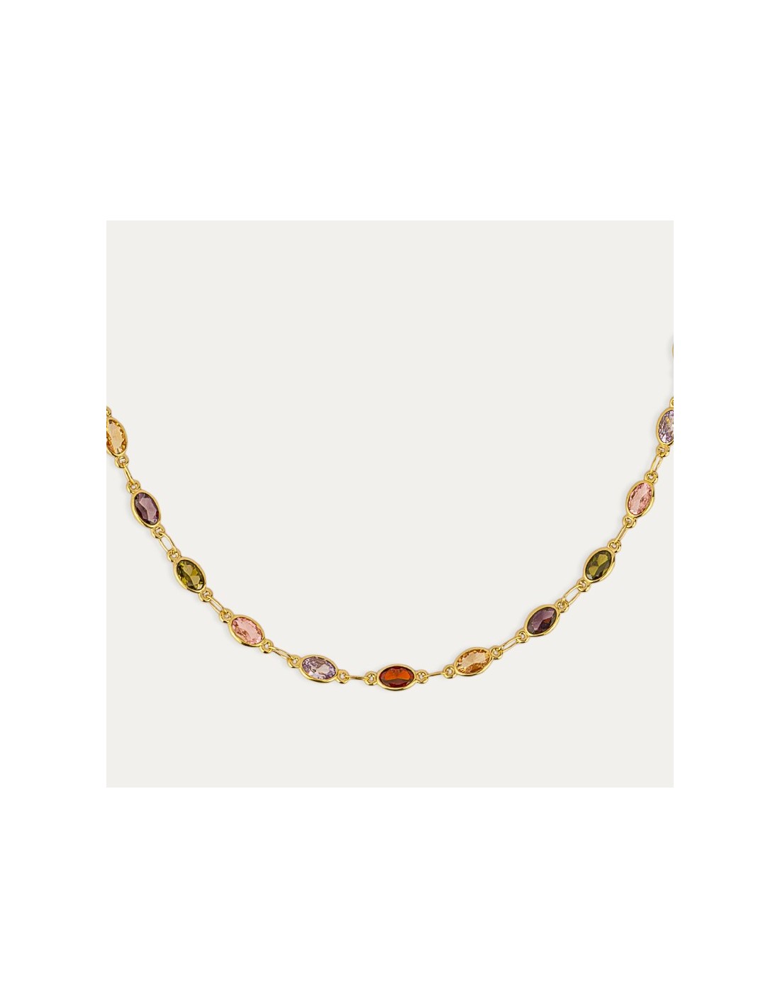Gargantilla elaborada en Oro de 18 kilates con abalorios de piedras de varios colores engastadas a modo de eslabones. Una joya colorida y llamativa que hace juego con la pulsera del mismo nombre.