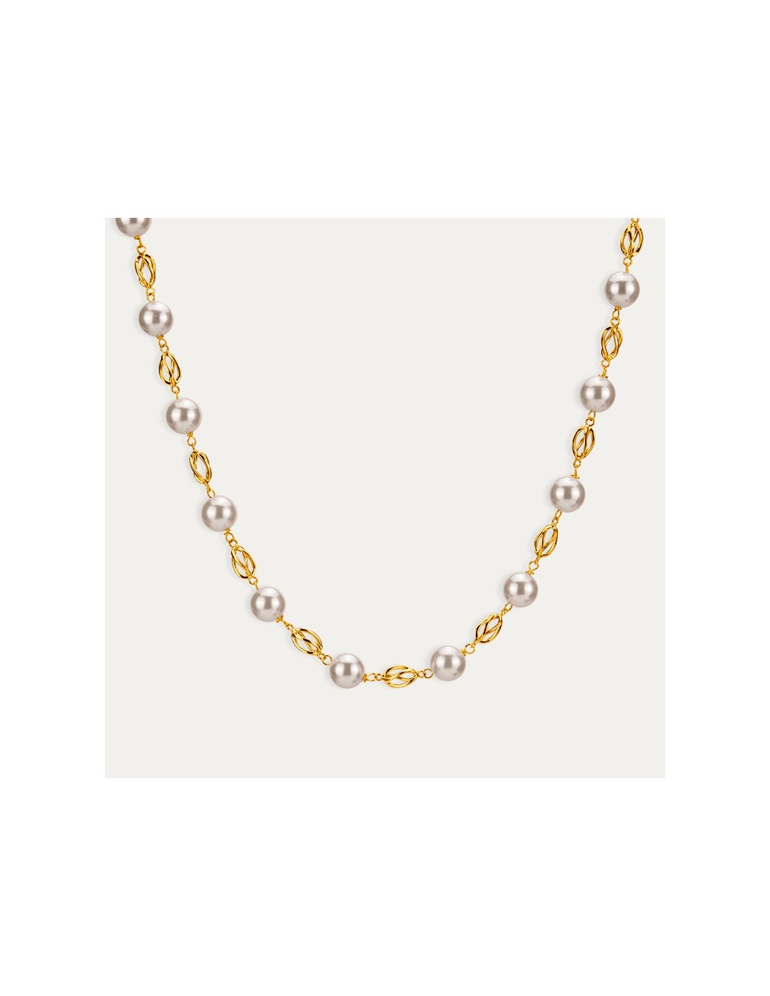 Elegante collar fabricado en oro de 18 quilates. Una pieza especial para momentos únicos. Formada por pequeñas perlas intercaladas entre sí por la cadena que da forma al collar.