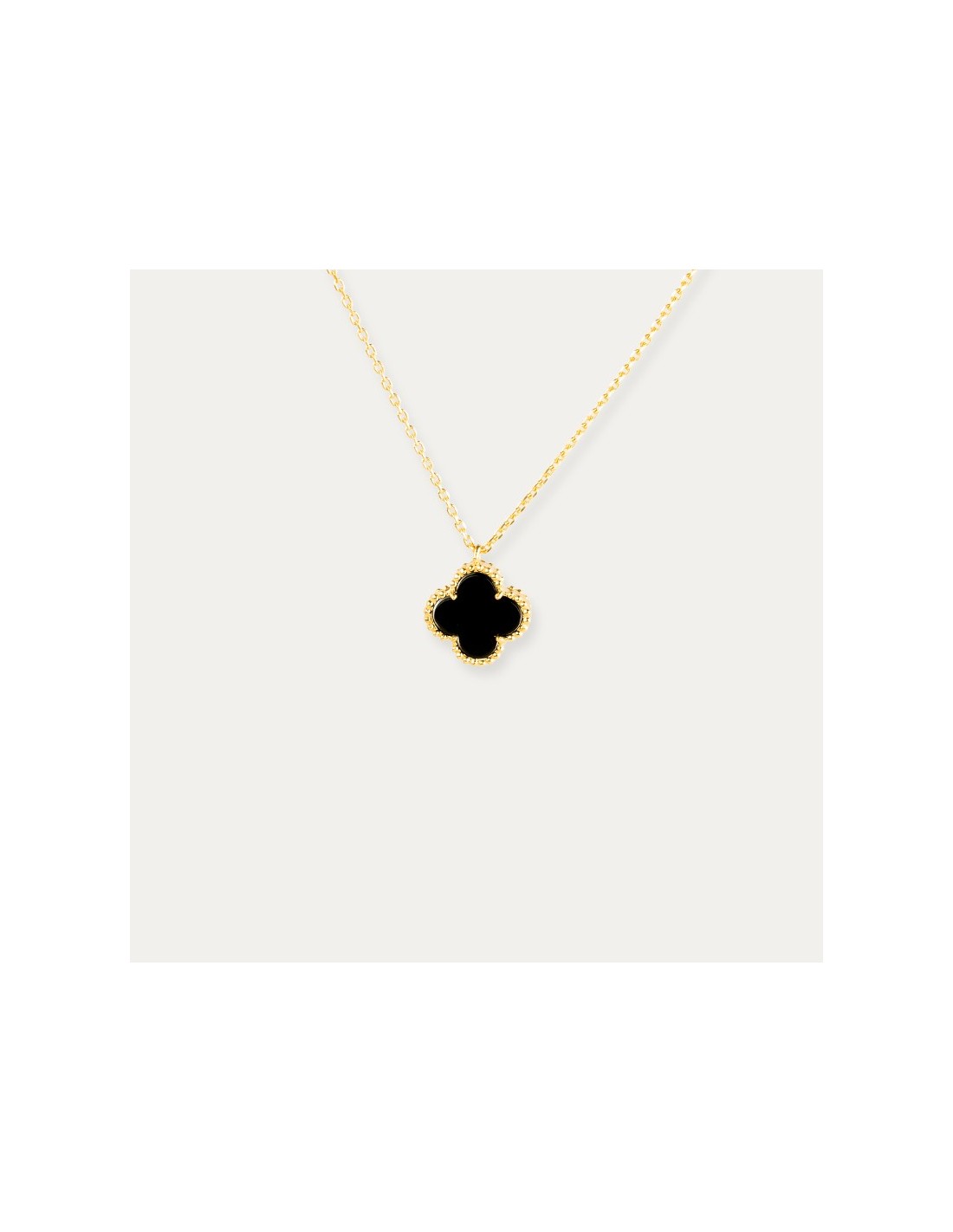Cadena más colgante en Plata dorada de Primera Ley con motivo de flor con piedra de color negro. Podrás combinarlo con cualquiera de tus joyas.