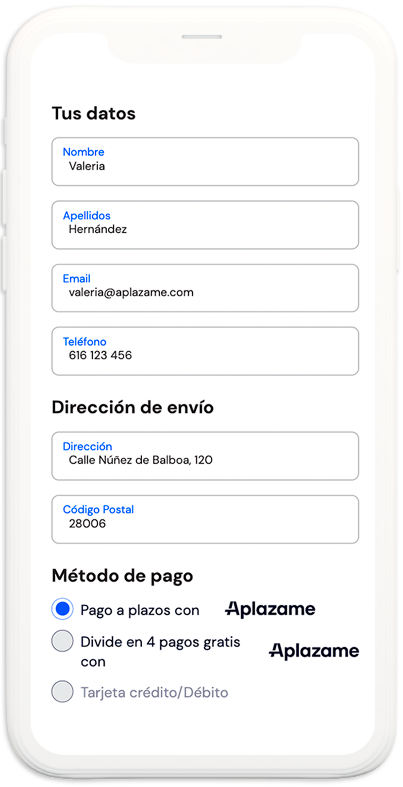 Los pagos se hacen con la tarjeta que aportes a Aplazame.