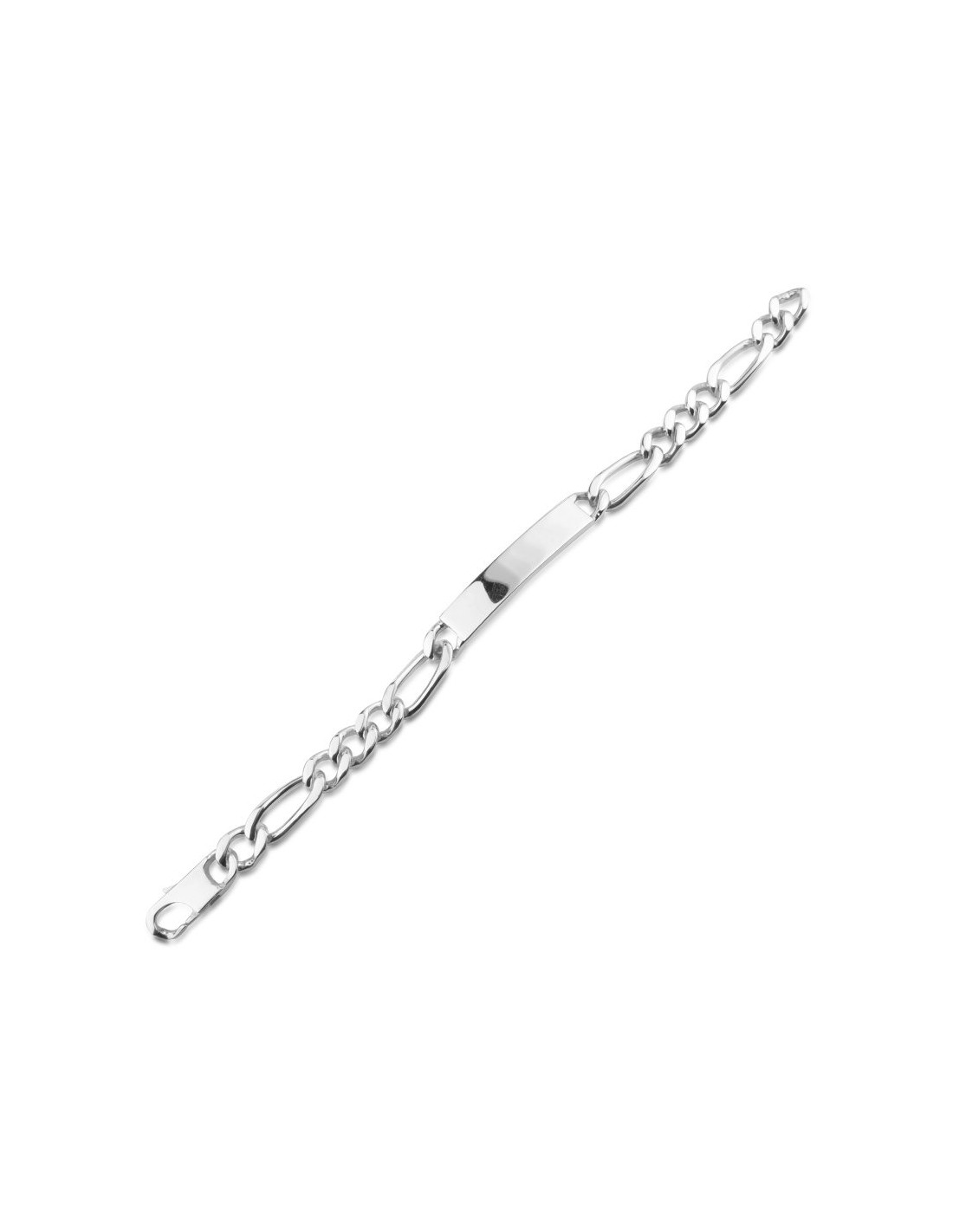Pulsera en Plata Primera Ley con chapa para grabar y eslabón tres por uno.