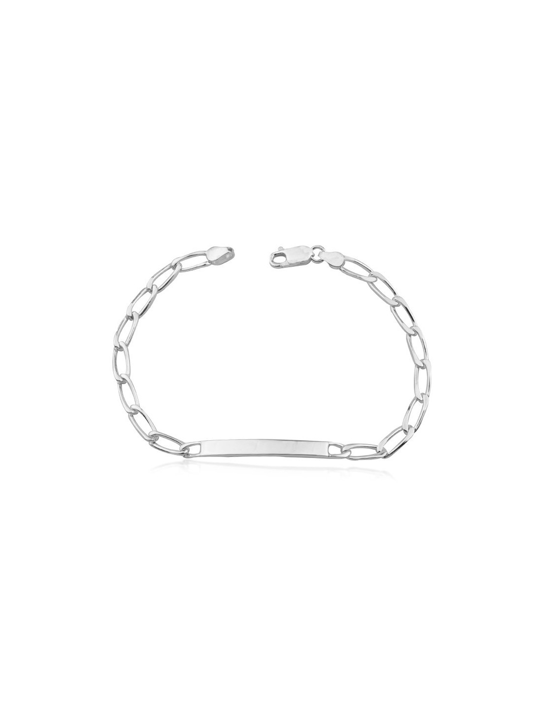 Pulsera en Plata de Primera Ley con chapa rectangular estilo esclava y cadena estilo Fígaro.
