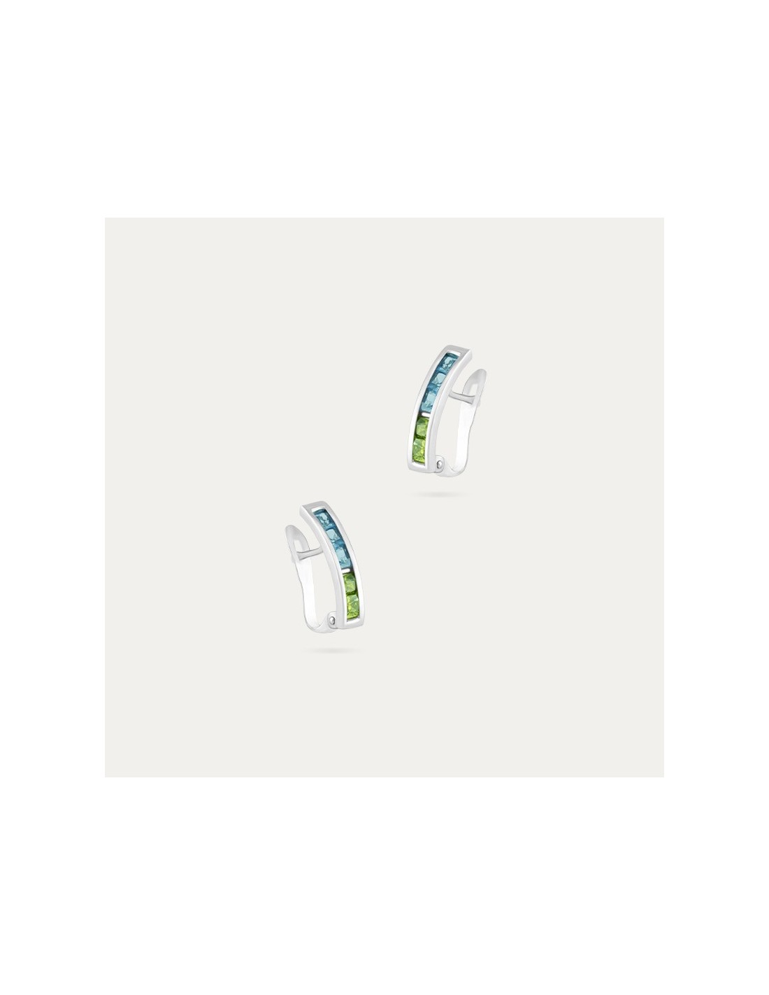 Pendientes de aro Oro Blanco de 18 quilates con piedras de color verde y azul. Con cierre catalán. Preciosos pendientes para sorprender.