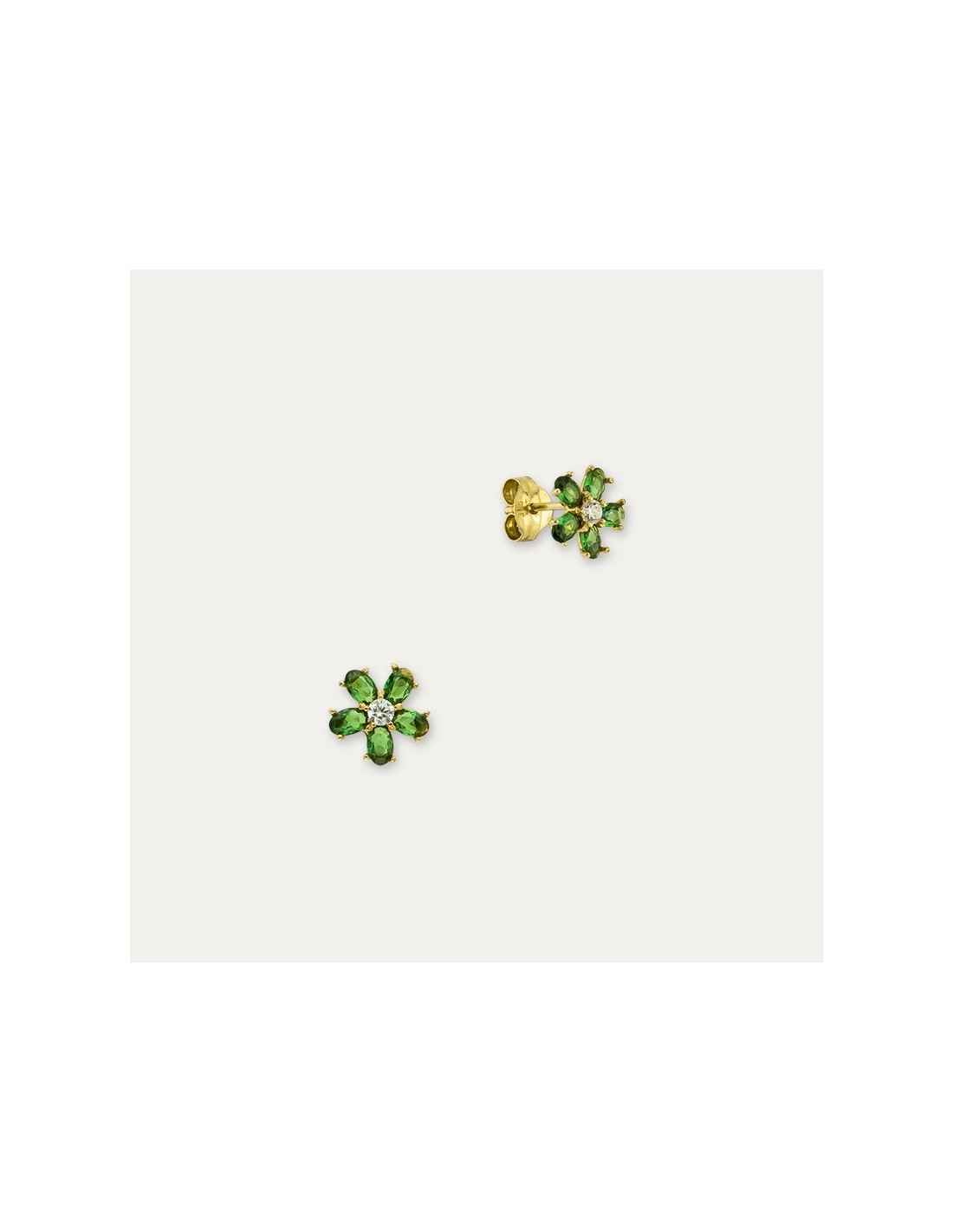 Pendientes Oro 9k Color Esmeralda Flor Emer