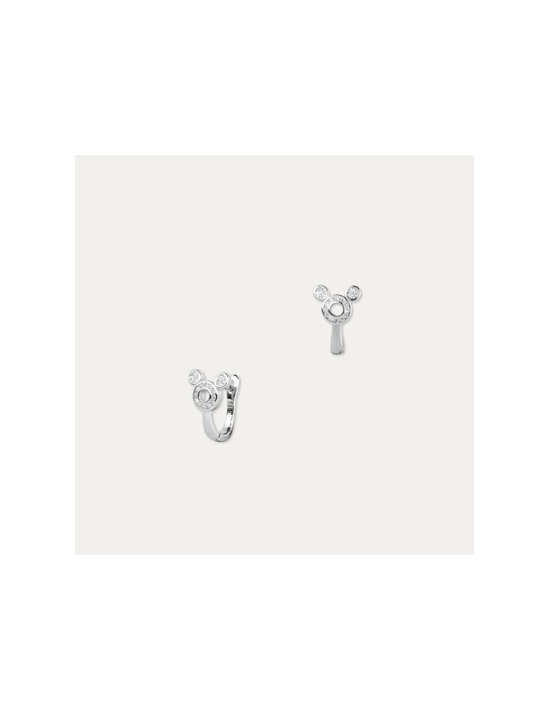 Par de pendientes en Plata Primera Ley con motivo de orejas de ratón decorado con circonitas y cierre catalán. Un regalo ideal para los mas pequeños y no tan pequeños.