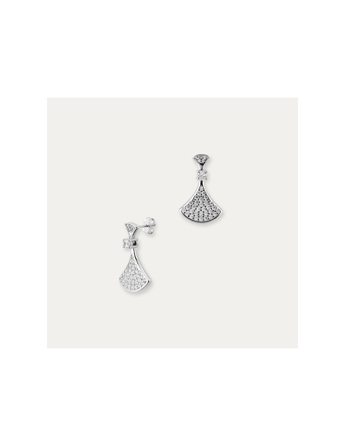 Par de pendientes de Plata Primera Ley con motivo de péndulo colgante decorado con circonitas. Deslumbra con estos pendientes que combinan con todo, ideales para cualquier ocasión.