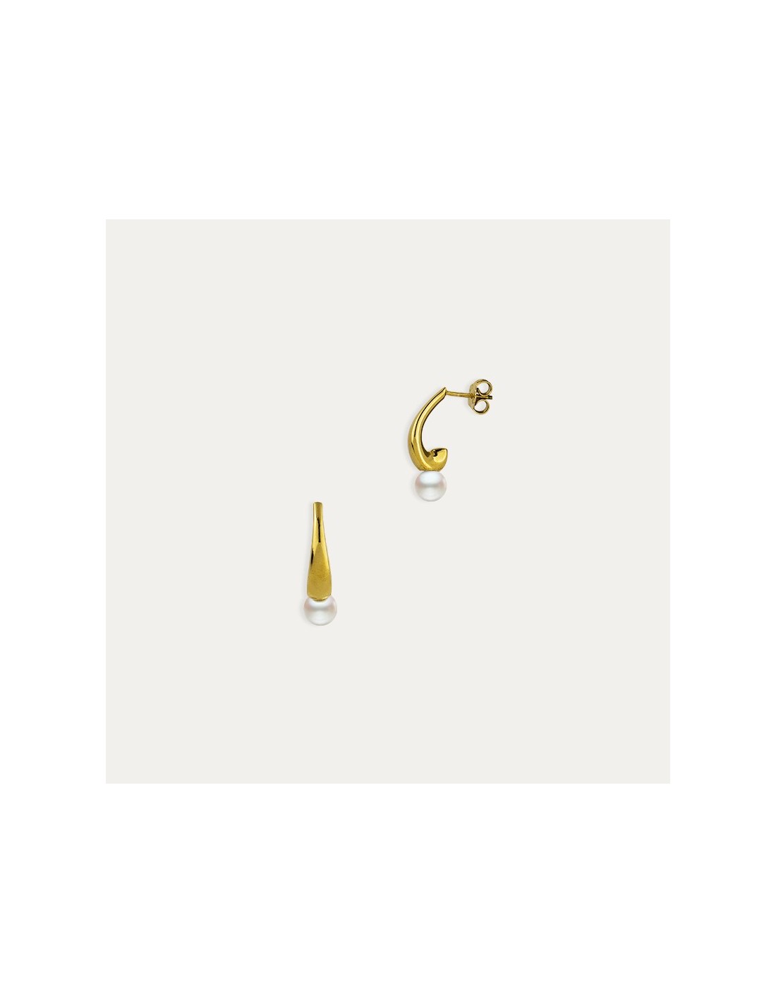 Pareja de pendientes largos fabricados en Plata dorada de Primera Ley decorados con una perla en la parte final. Un complemento ideal que no puede faltar en nuestro joyero.