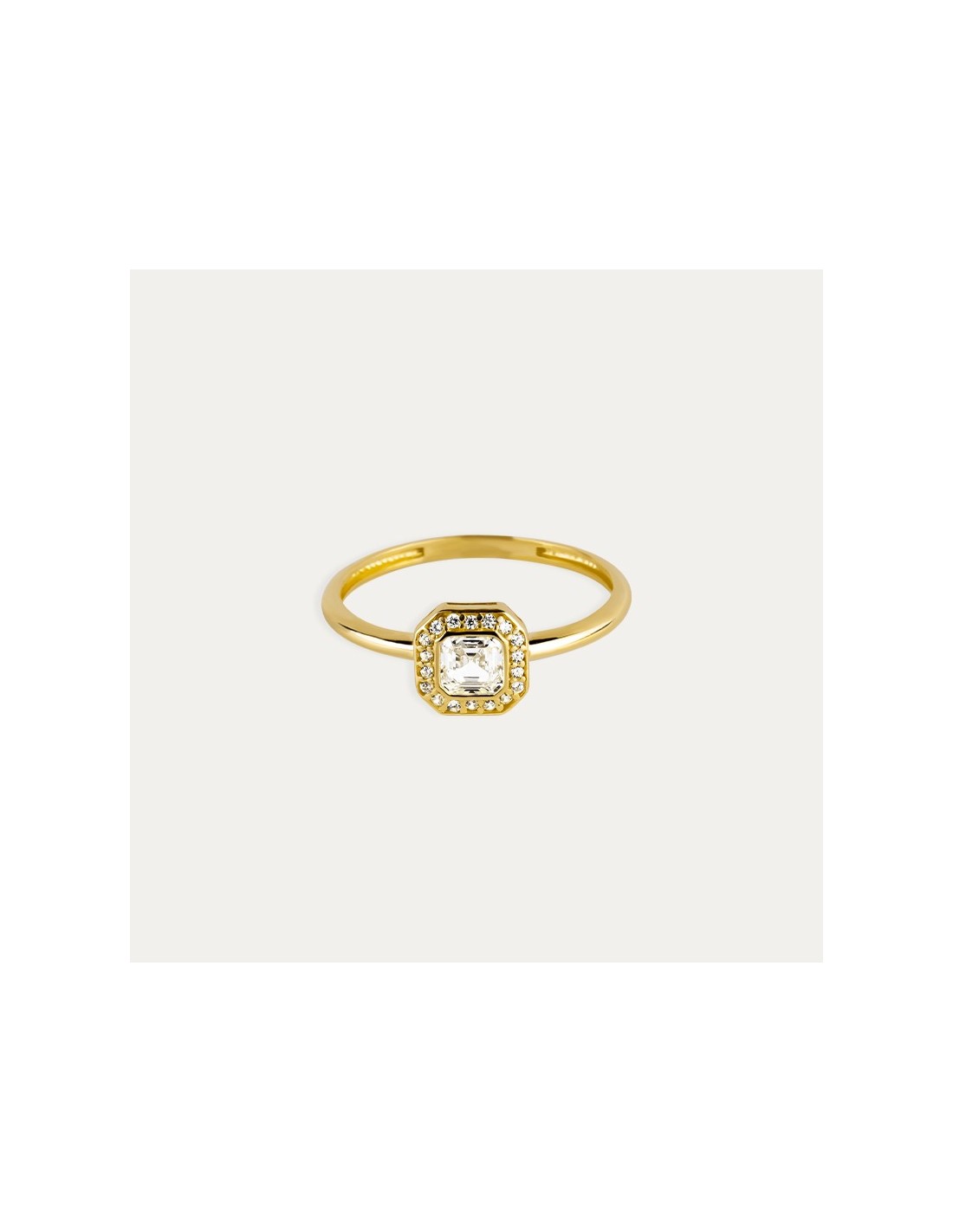 Sortija de oro 9 quilates en forma cuadrada con circonitas. Un básico para ti.