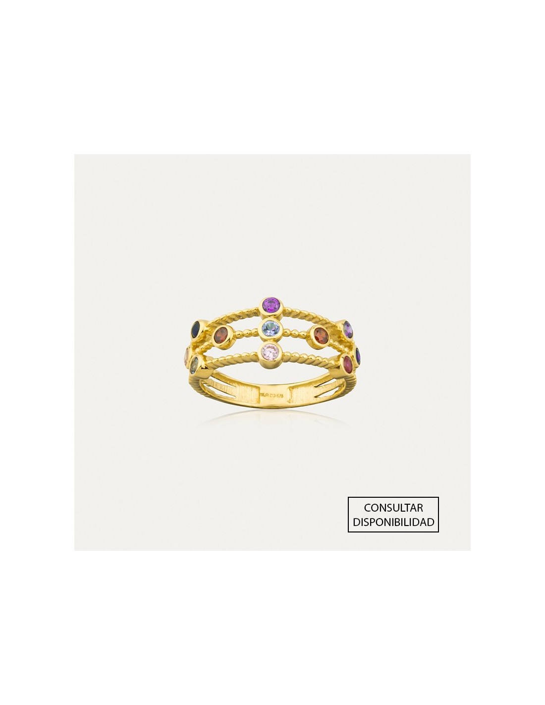 Sortija Oro 18k Piedras Color Oval Union