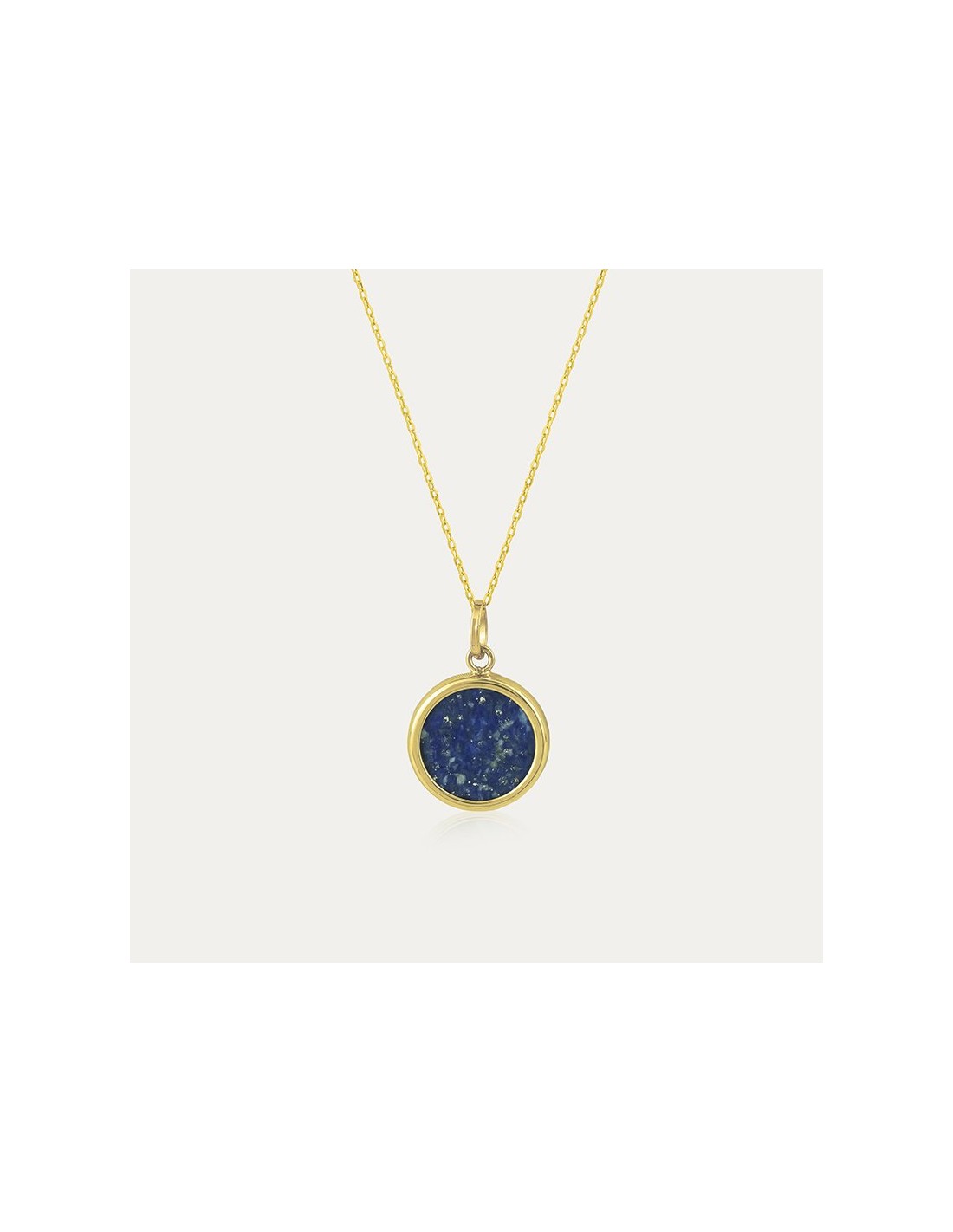 Gargantilla en Oro de 9k con un disco de piedra de Lapislázuli engarzado en un aro, un diseño fino y elegante.