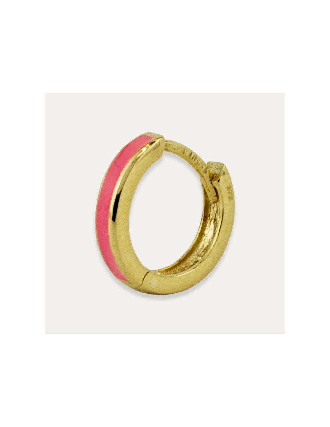 Pendientes de aro en Oro 9K. Aros divertidos con esmalte de color rosa. Combínalo con tus pendientes o piercings de colores favoritos. ¡Te encantarán!