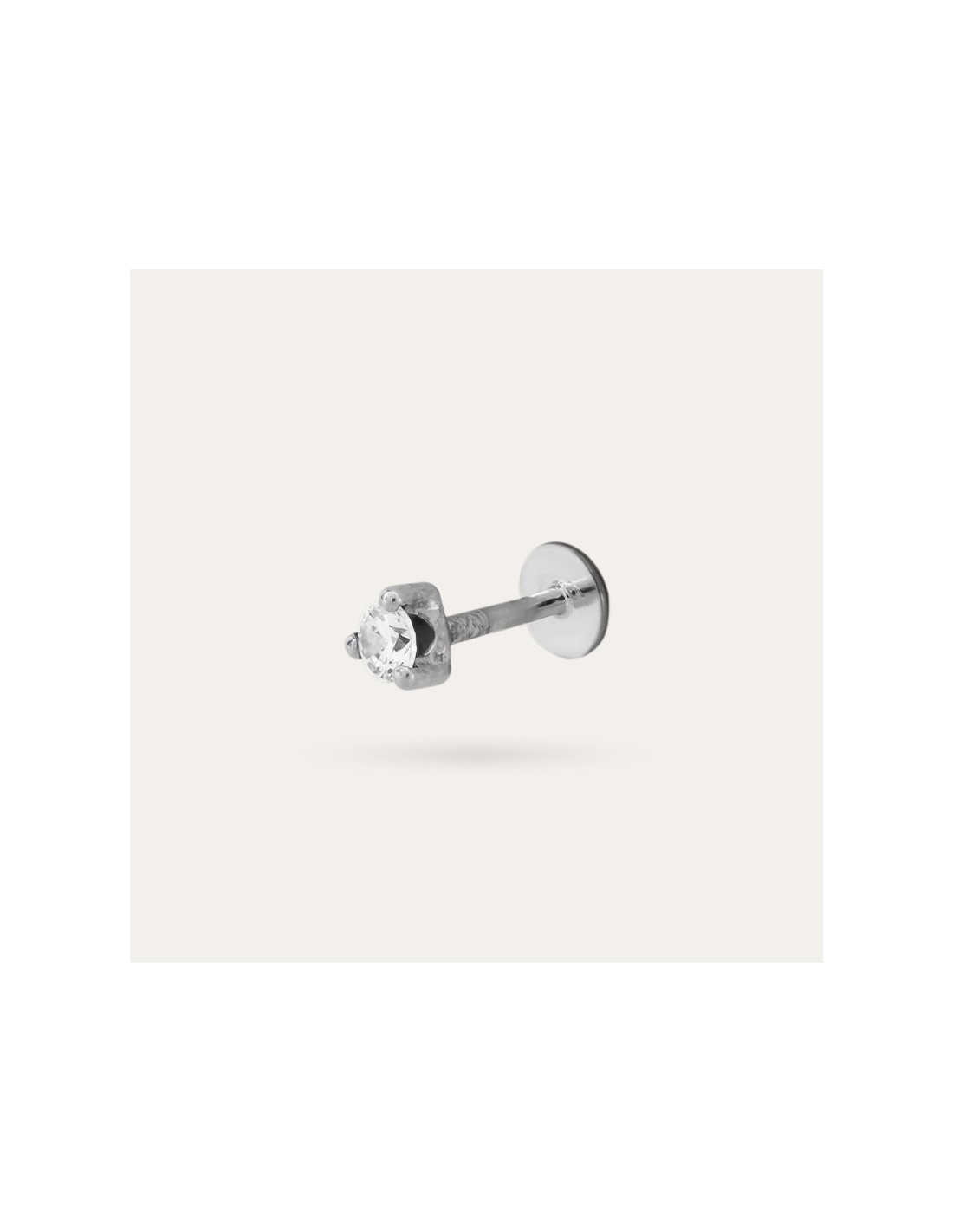 Piercing en Oro blanco de 9 quilates. Piercing formado por una circonita central engarzada, en oro blanco. Un piercing diferente al resto.