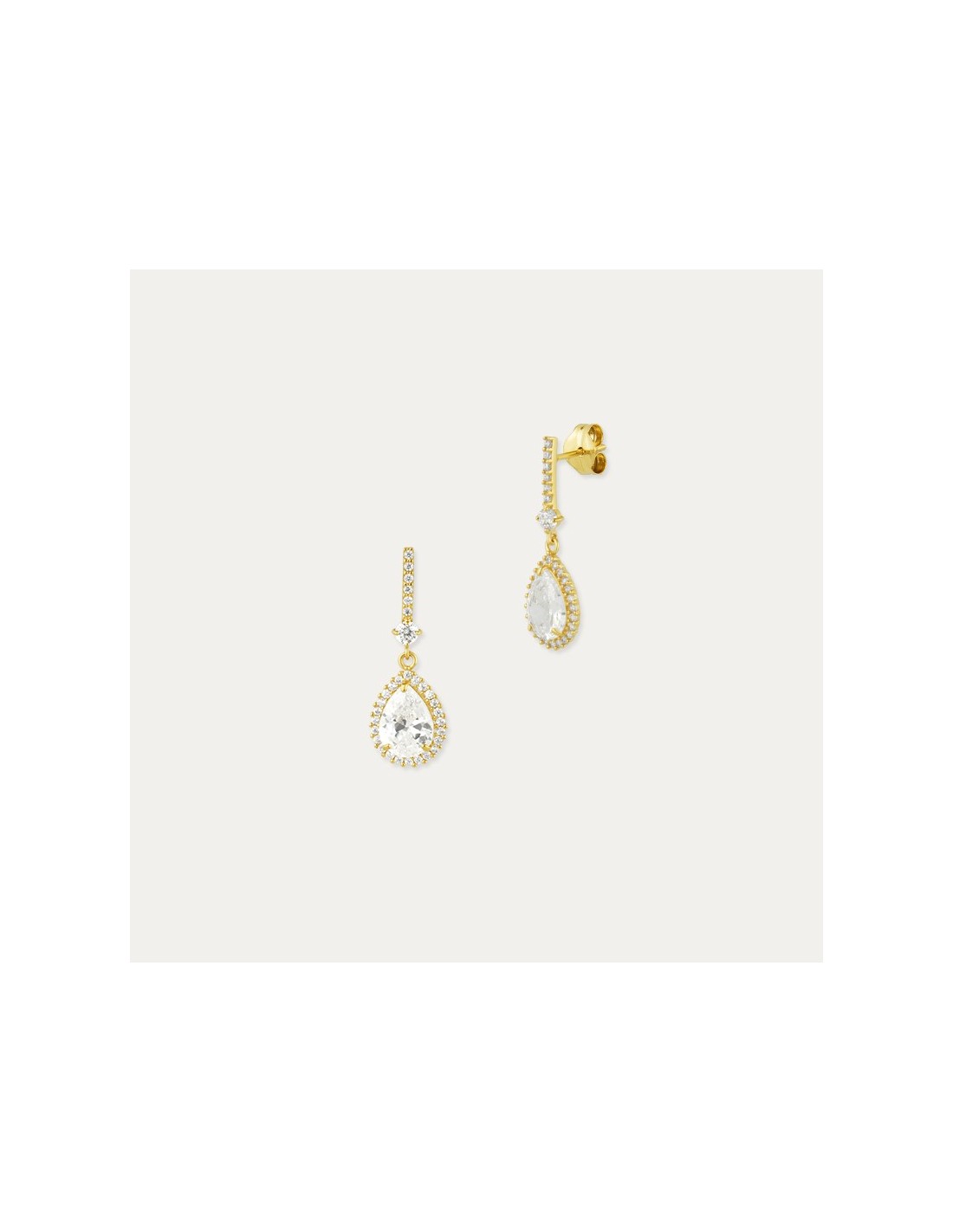 Pendientes Largos Oro Lagrima Circonitas Oak