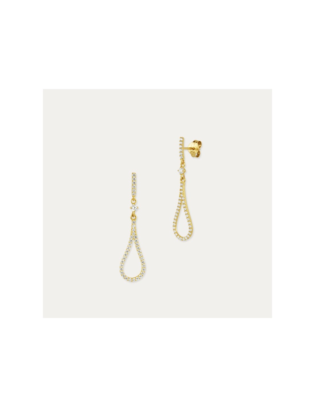 Pendientes Largos Oro 9k Lagrima Circonitas Quercus