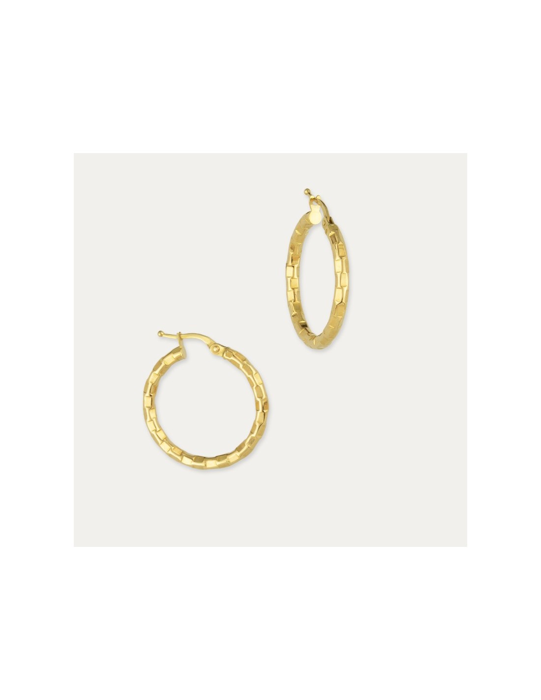 Pendientes de aro fabricados en oro amarillo de 18 quilates con textura de bambú. Una joya diferente para ti.