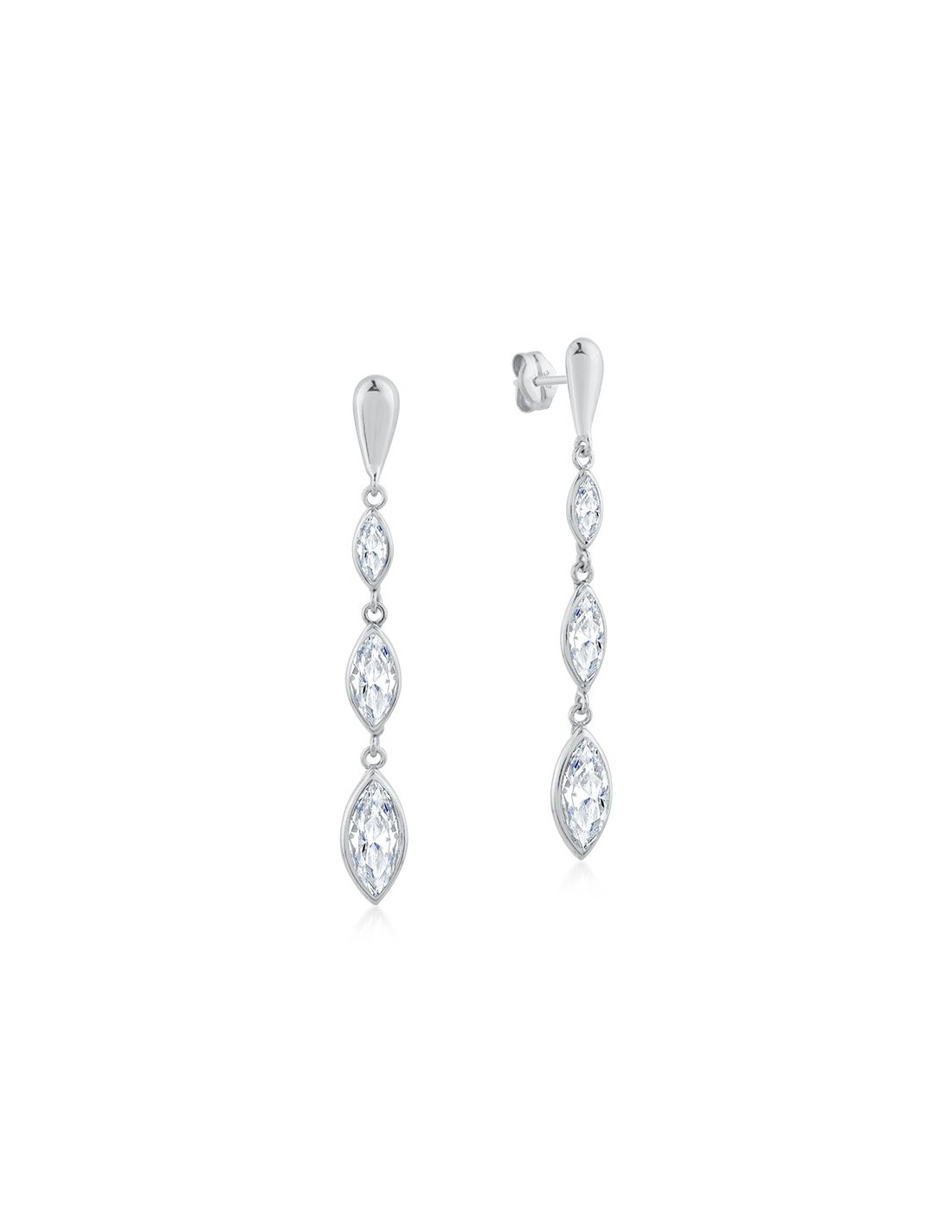 Pendientes colgantes de oro blanco y circonitas, con cierre de presión.