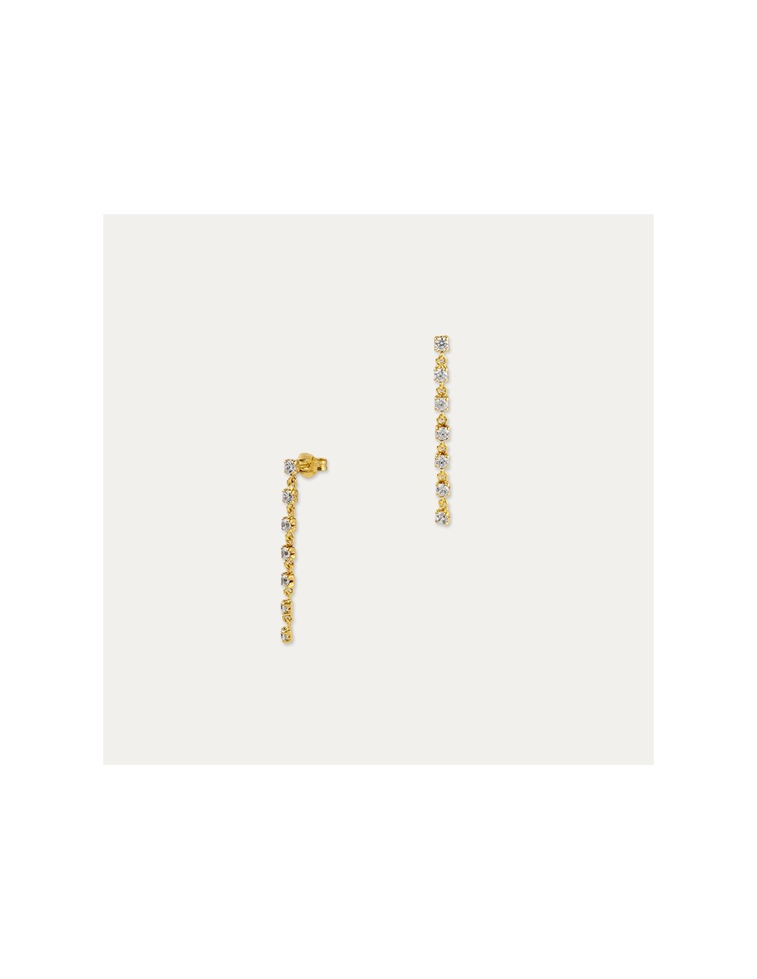 Elegantes pendientes de oro con pequeñas circonitas en cascada fabricados en 18k.