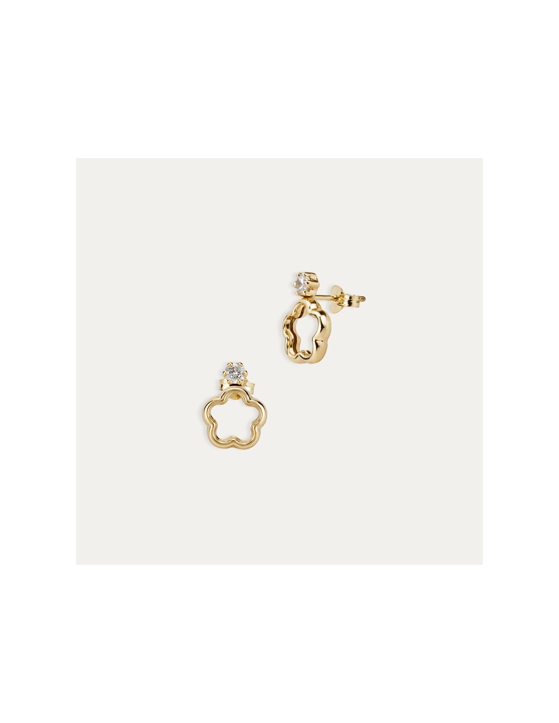 Pendientes fabricados en oro amarillo de 9 quilates con forma de flor y pequeña circonita en la parte superior.
