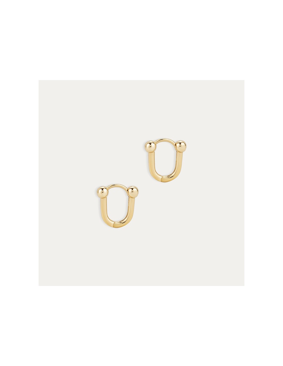 Pareja de pendientes de aro de oro de 9 quilates con minimalistas bolas en la parte superior.