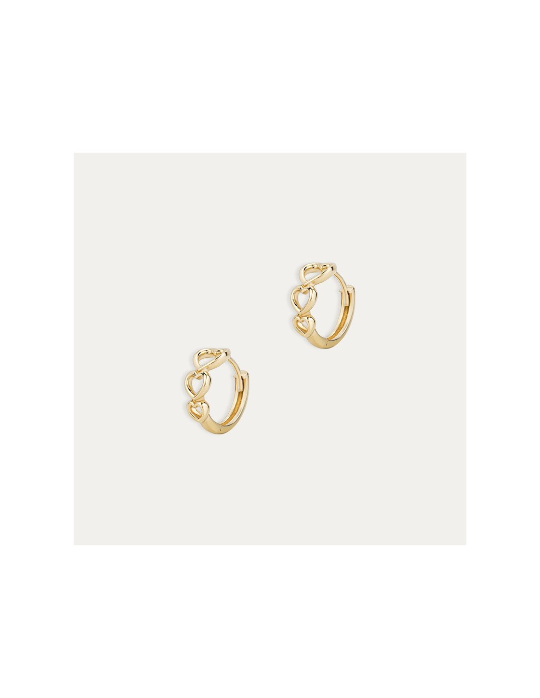 Pendientes con forma de aro y 3 corazones fabricados en oro de 9 quilates.