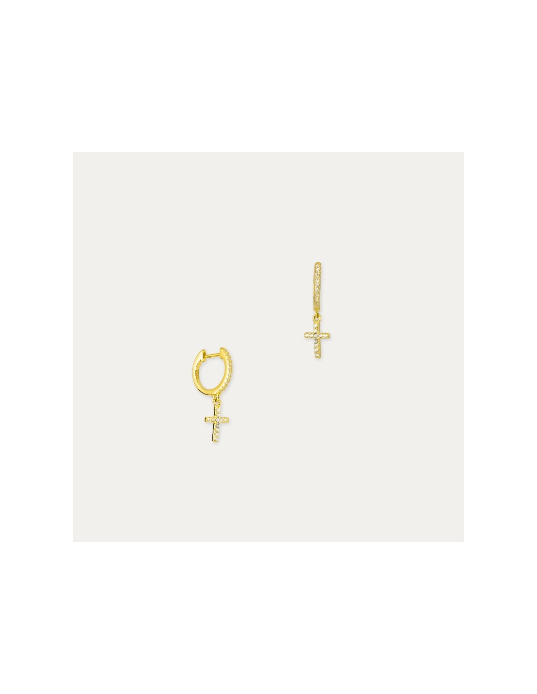 Pendientes de aro en plata dorada. Unos pendientes preciosos para llevar la cruz en el día a día.