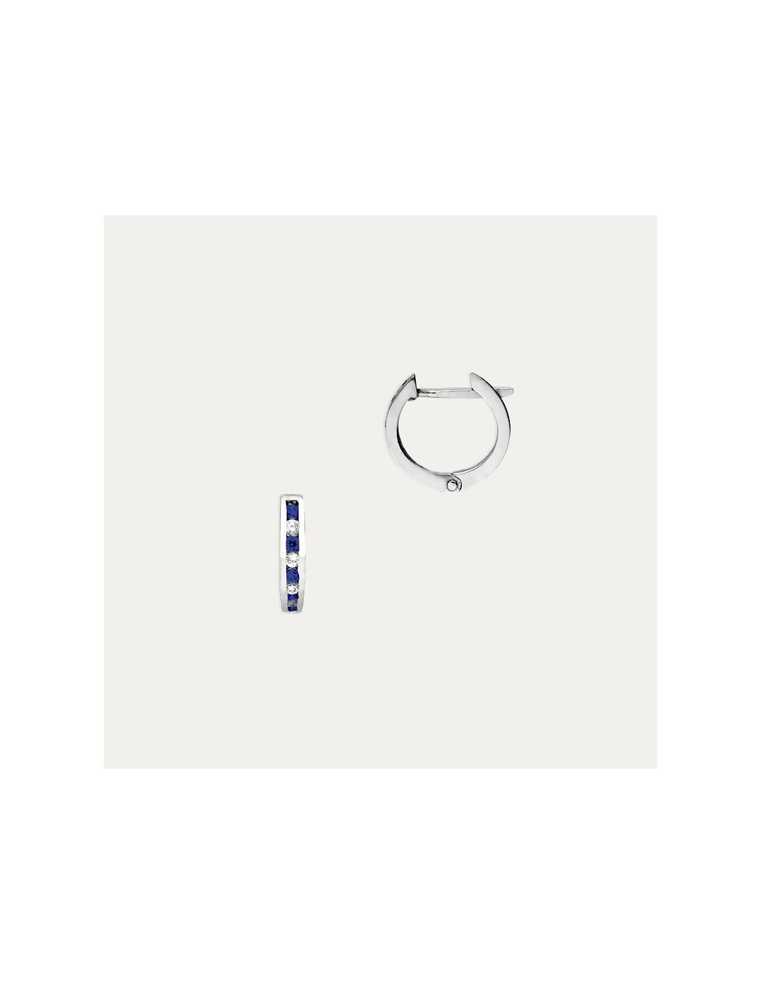 Par de pendientes de aro fabricados en Oro de 18 kilates con Diamantes Creados y zafiros.