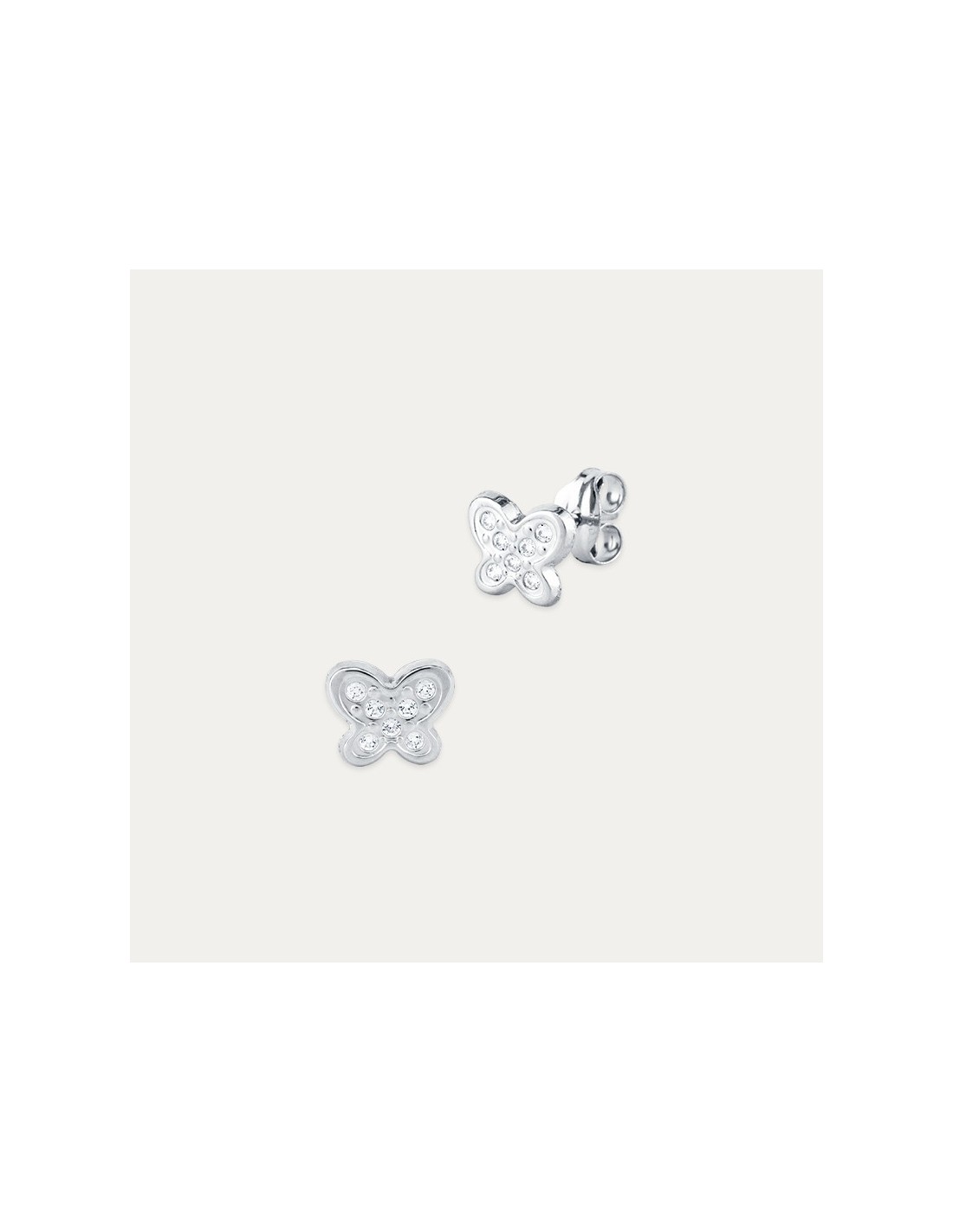Pendientes en Oro de 18 kilates blanco con motivo de mariposa y circonitas. Perfectas piezas para completar un look de Primera Comunión.