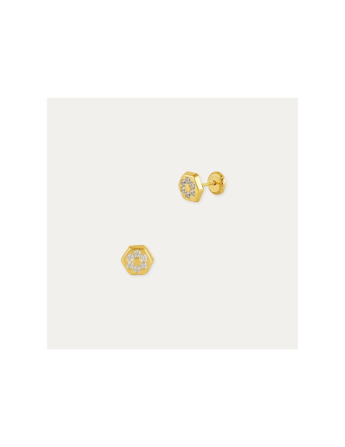 Pendientes Oro 18k Hexagonal Circonitas Kastraki