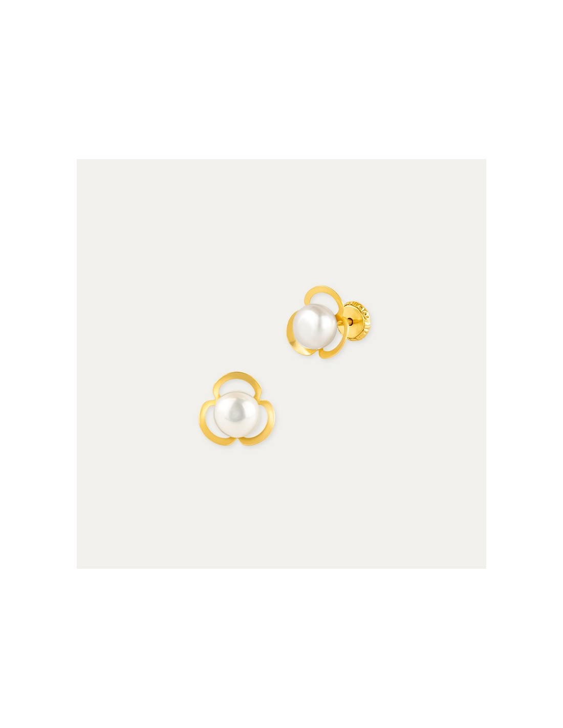 Pendientes de Oro 18k en Flor con Perla Grevená