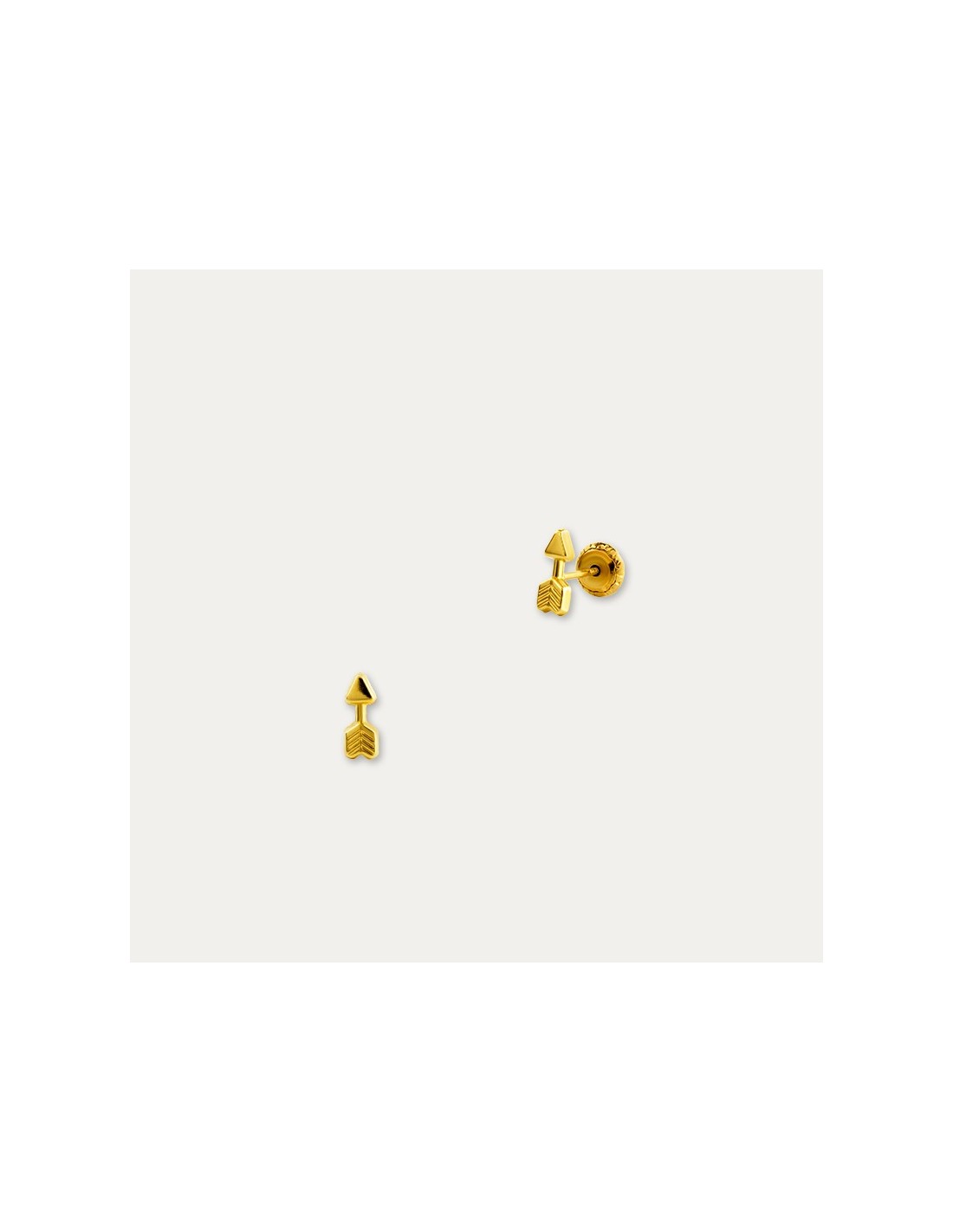 Pendiente en Oro de 18 kilates con motivo de punta de flecha. Se pueden utilizar como pendientes infantiles o como piercing.