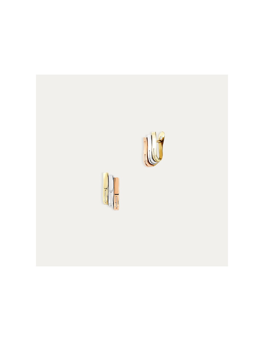 Pareja de pendientes en Oro de 9 kilates en tres colores amarillo, blanco y rosa con cierre de estilo catalán.