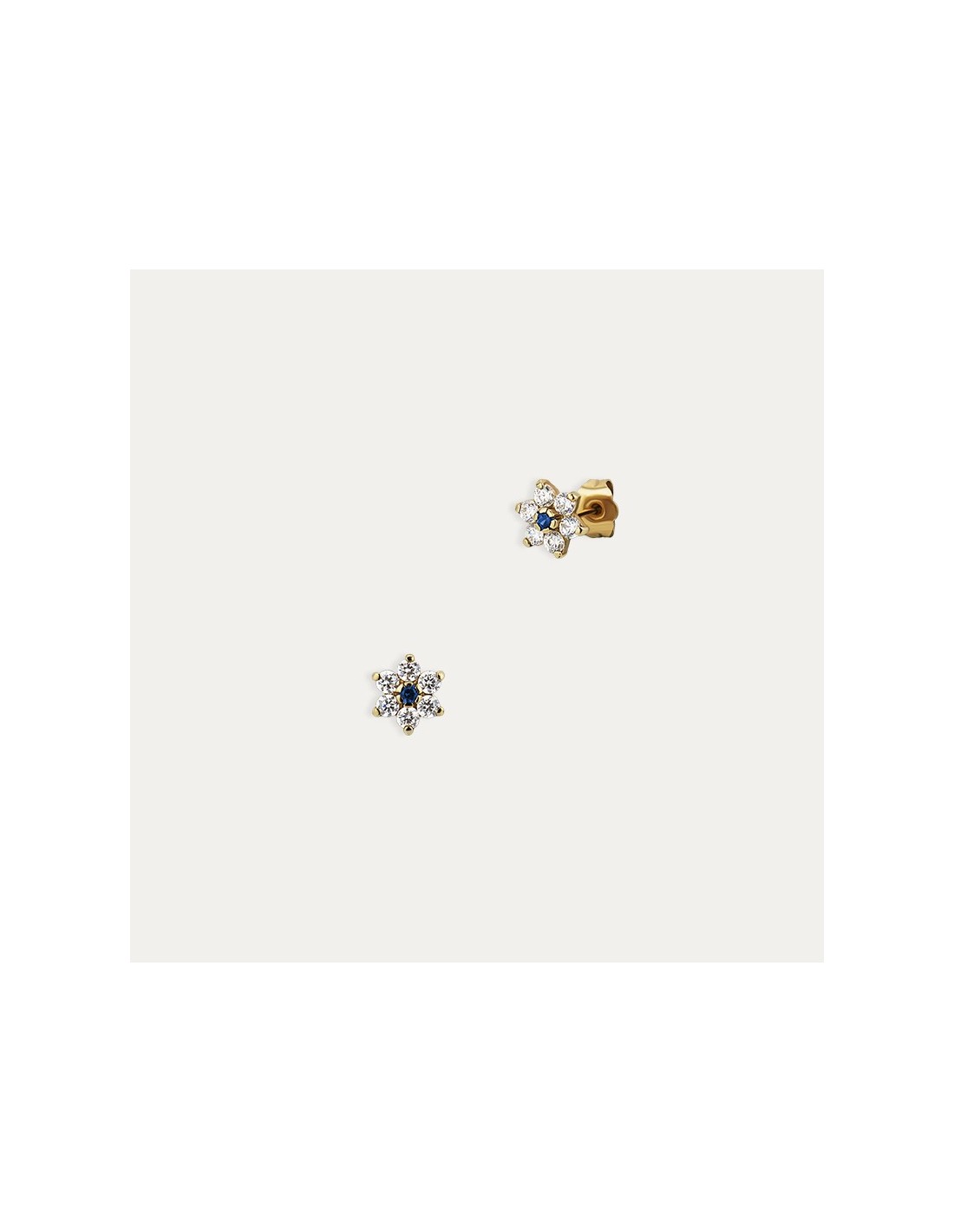 Pendientes de Oro 9k con Piedra de Color Zafiro y Flor de Circonitas Vents