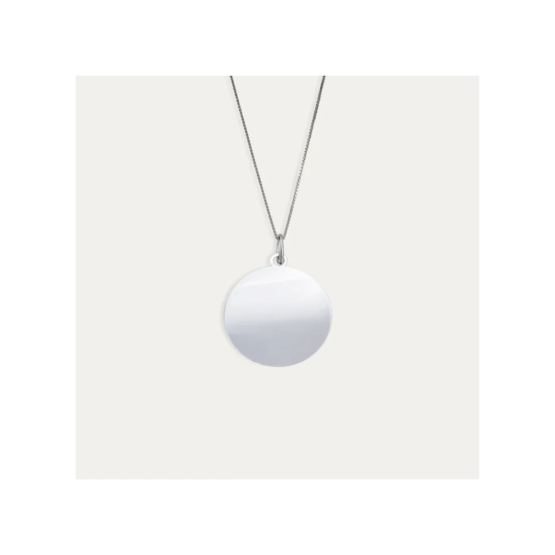 La chapa disco personalizada en Plata de Primera Ley ofrece un diseño clásico y minimalista, ideal para todo tipo de grabados, incluye una cadena de estilo veneciana.