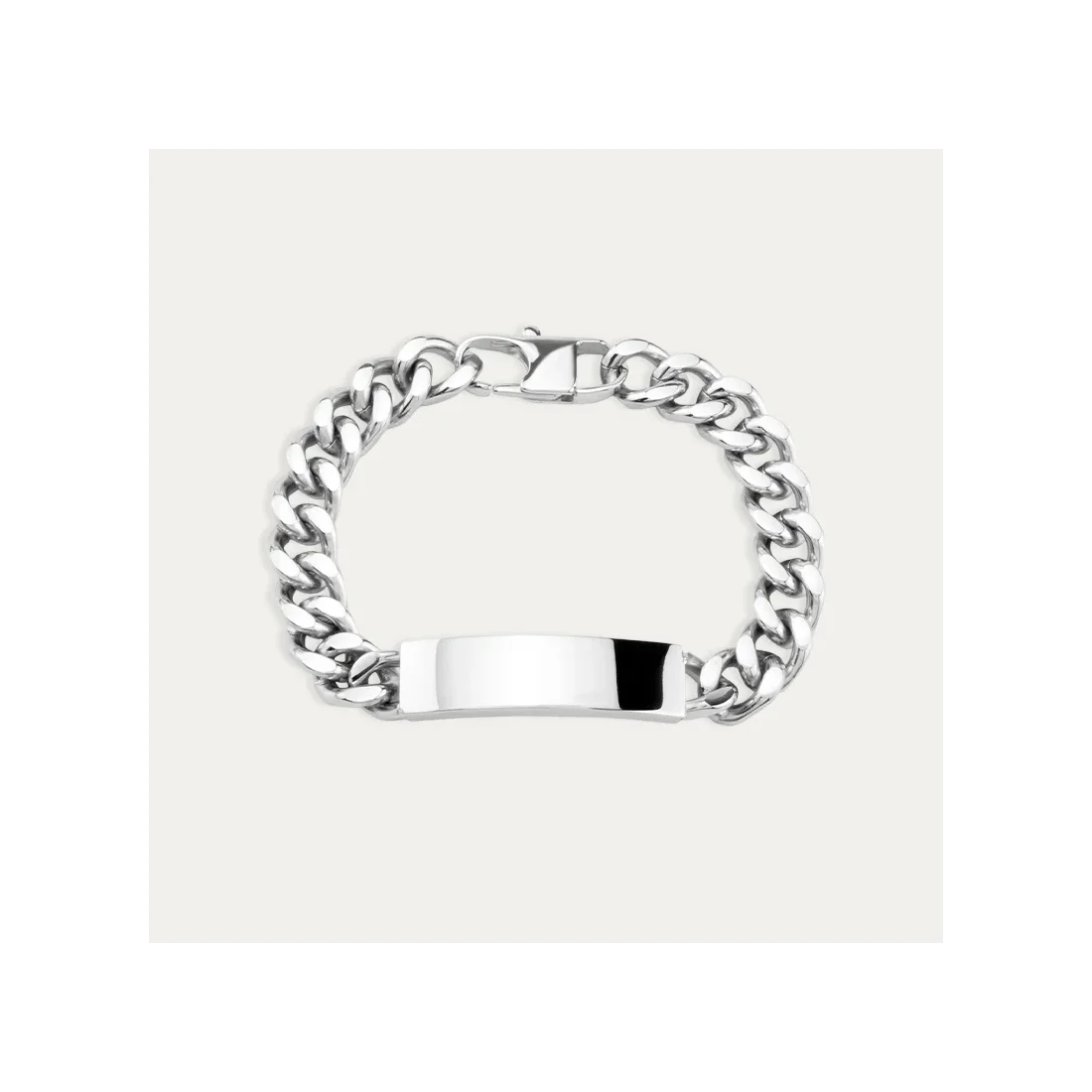 Pulsera esclava con chapa personalizable por ambos lados, con un eslabón de estilo barbado de gran tamaño.