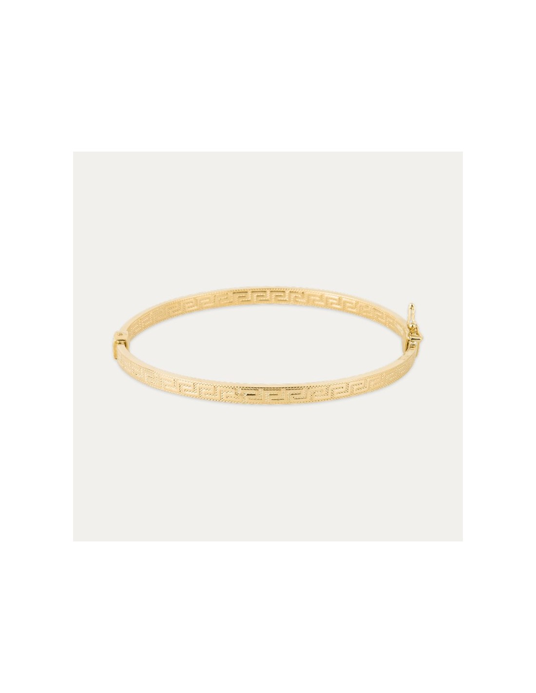 Pulsera de media caña en Oro de 9 quilates con greca grabada para completar tu outfit de noche.